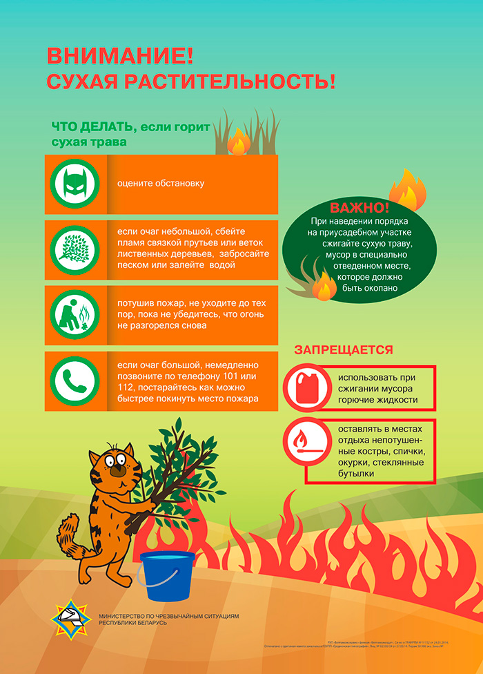 Чтобы предотвратить необдуманные поступки, спасатели проводят ежедневную масштабную информационно-разъяснительную работу с населением. Кроме того, материалы о безопасности в пожароопасный период, в том числе тест по палам и полезные лайфхаки на эту тему, публикуются в разделе «Будь готов!» на официальном сайте Министерства по чрезвычайным ситуациям Республики Беларусь.