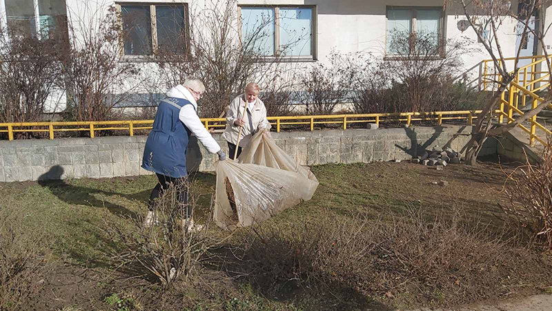 Вместе с работниками «Зеленстроя» молодые люди убирали прошлогоднюю листву в Севастопольском парке, скверах на ул. Славинского и Руссиянова, занимались окраской ограждения на бульваре Толбухина.