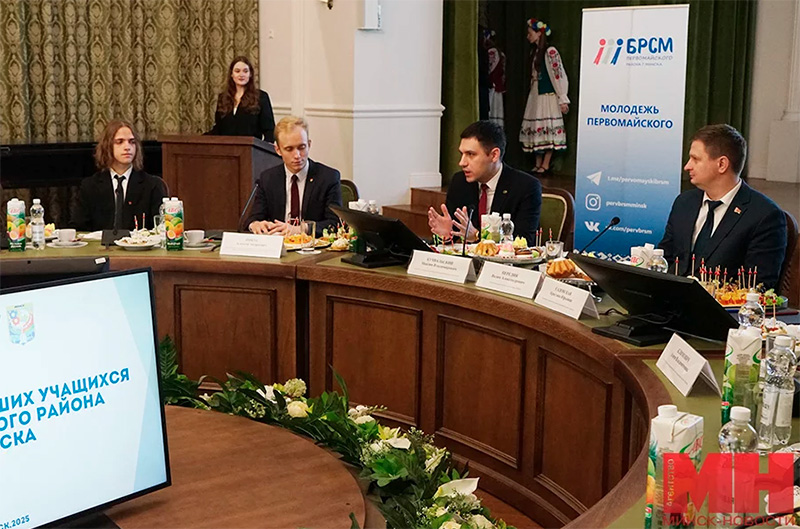 Глава администрации Первомайского Вадим Передня встретился с лучшими выпускниками районных учреждений среднего образования в НАН Беларуси 30 мая.