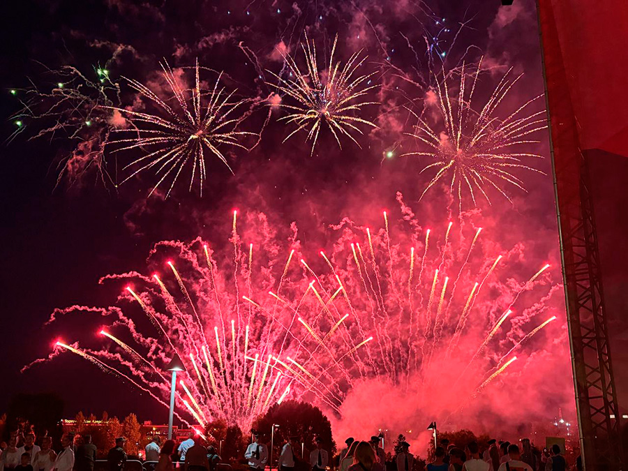 В сквере «Яблоневый» прошли выставка техники, яркая концертная программа, которую дополнил конкурс кавер-бендов предприятий, и разнообразные локации с активными развлечениями для посетителей всех возрастов. Здесь не только угощали всеми любимой солдатской кашей, но и предлагали продегустировать кухни стран мира, которые были представлены на фуд-корте.