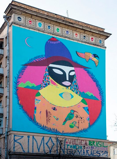 Мурал «Человек мира» на стене дома №2 по ул. Калинина в японском головном уборе, с намеком на африканские черты, с бразильскими символами. Есть здесь даже белорусский котик — одна из жительниц дома так просила художника нарисовать что-нибудь красивое, что он сдался и нарисовал её котика, доставив этим женщине массу удовольствия. Изображение передает многообразие культуры Бразилии, на которую повлияла и азиатская, и африканская, и европейская культуры.