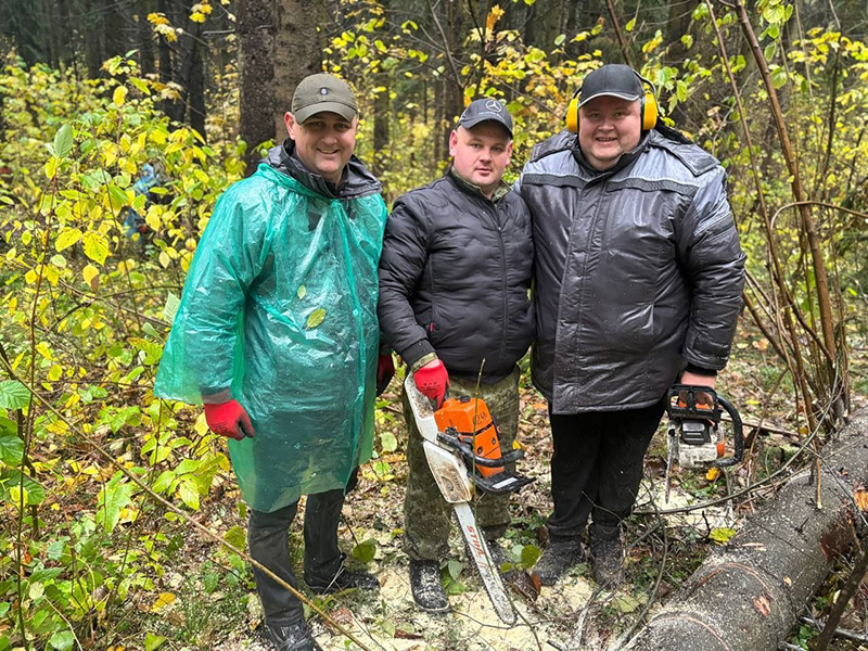 На этой локации трудовой десант наводил порядок в части расчистки лесопарковой зоны от поваленных и старых деревьев, мусора и листвы.