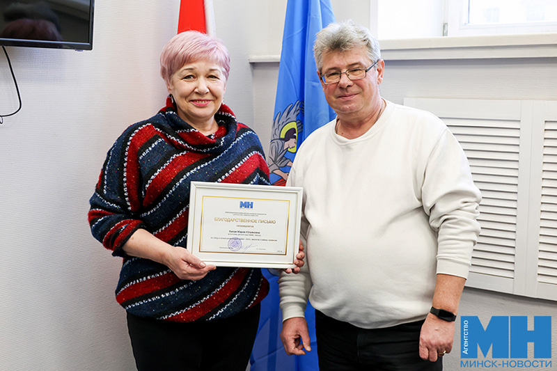 В агентстве «Минск-Новости» вручили благодарственное письмо воспитательнице детского сада № 486 Марии Белой