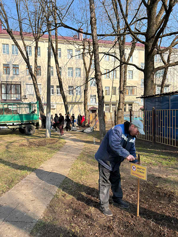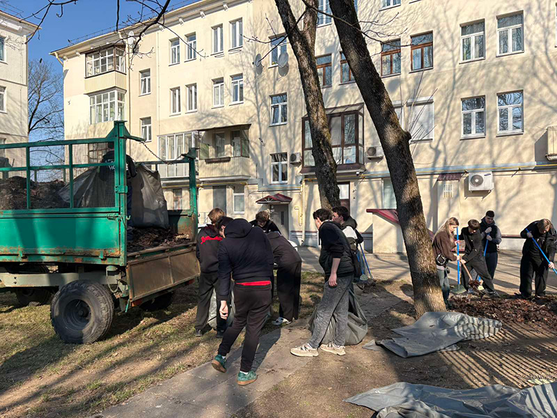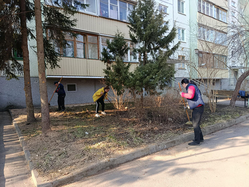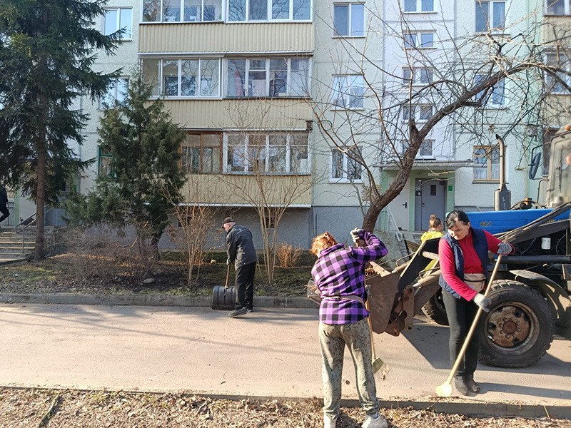 В Первомайском районе столицы 28 марта прошли массовые субботники. Наблюдалась тотальная мобилизация граблей, метел и хорошего настроения.
