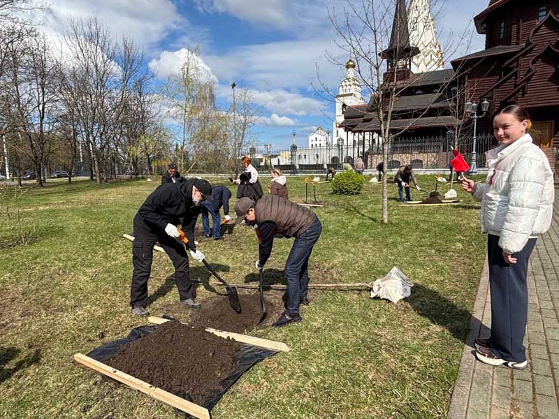 — По итогам Года благоустройства Первомайский район занял первое место, было высажено 4,6 тыс. деревьев, 38 тыс. кустарников и почти 80 тыс. цветов, — отметил первый заместитель главы администрации Первомайского района Максим Соколов. — На этот год еще более амбициозные планы. Только за сегодня было убрано от сорной растительности и мусора 21 га, высажено 250 деревьев и около 100 кустарников. Инициатива высадить аллею поступила в администрацию Первомайского района от МИД и была поддержана, а для реализации была предложена эта локация, так как Храм-памятник в честь Всех Святых не только важное культовое место, но и значимое в сохранении памяти.