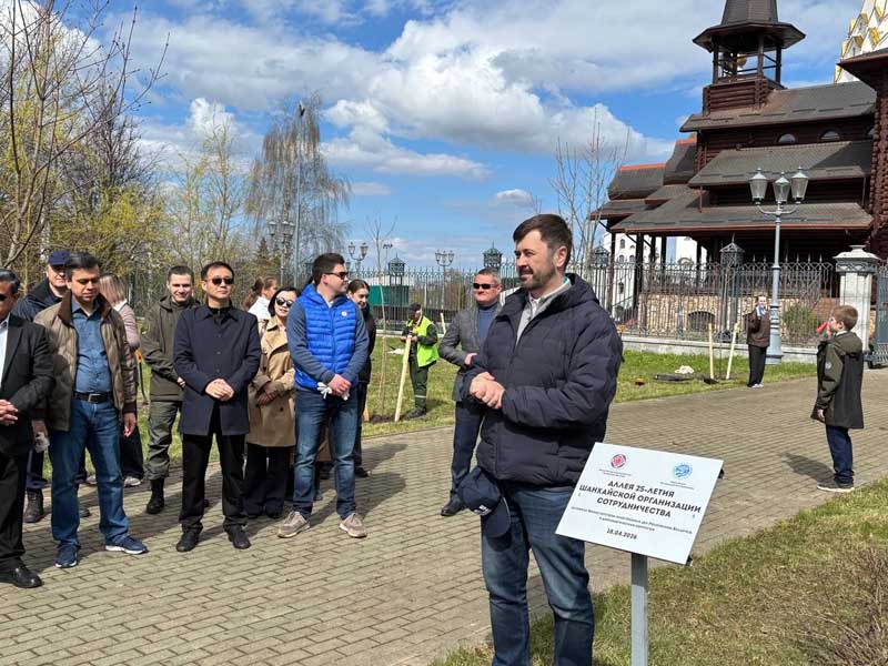 Торжественная церемония закладки памятной аллеи как часть акции «Зеленый пояс ШОС», приуроченной к 25-летию Шанхайской организации сотрудничества (ШОС), прошла в Яблоневом сквере у Храма-памятника в честь Всех Святых 18 апреля.