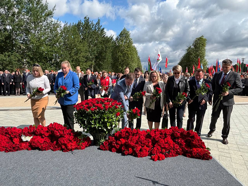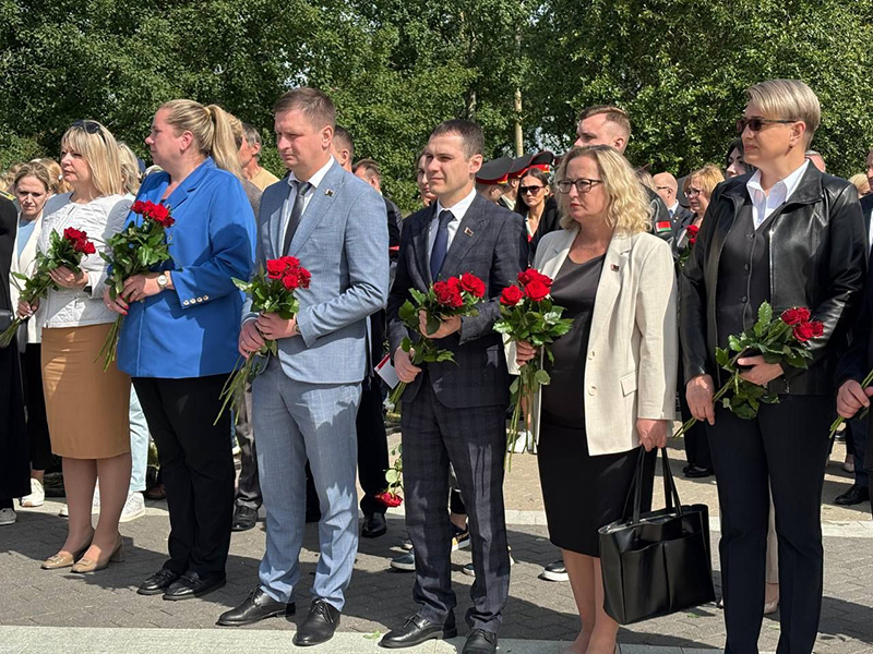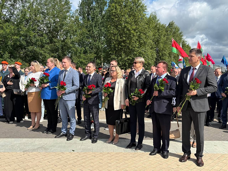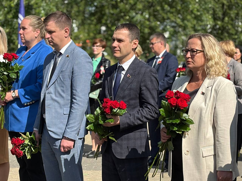 В составе делегации руководство администрации, депутаты, представители трудовых коллективов, учреждений образования, здравоохранения, молодежь.