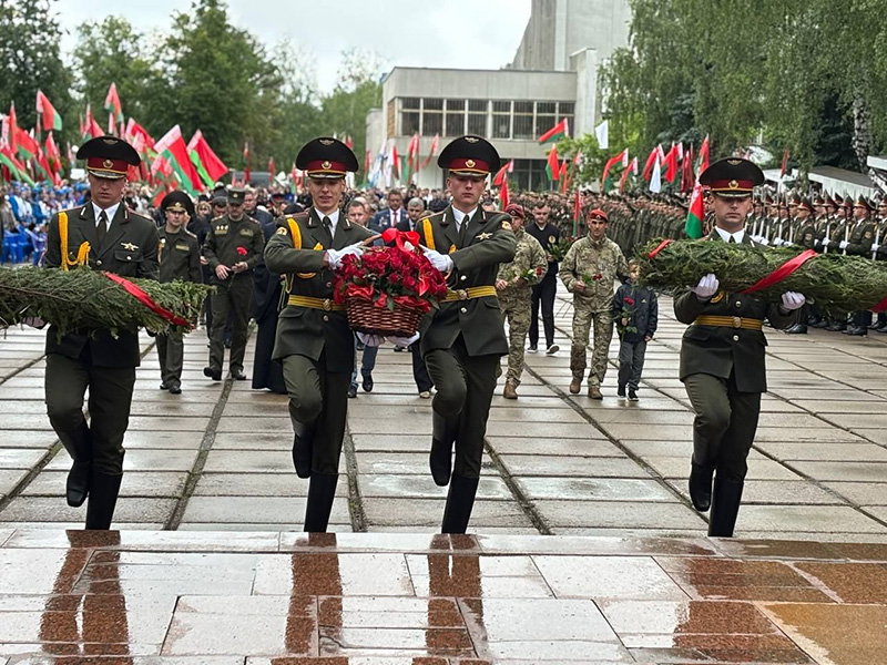 На месте увековечения подвигов Героев 120 -й отдельной гвардейской механизированной бригады, на мемориальном комплексе «Боевой путь гвардейцев» собрались руководство администрации Первомайского района, депутаты, представители Белорусской Православной Церкви, военнослужащие и курсанты, общественные организации, представители трудовых коллективов, учреждений образования, организаций и предприятий района, приглашенные.