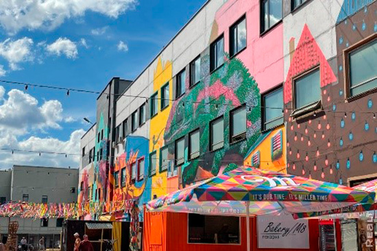 Группа муралов размещена на зданиях фуд-корт площадки «Лучшая улица», которая находится во дворике Минского часового завода «Луч» по адресу пр. Независимости, 95 корп. 16. Выделяют пространство огромные яркие муралы на кирпиче: мотивы природы, города.
