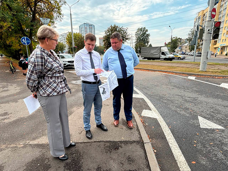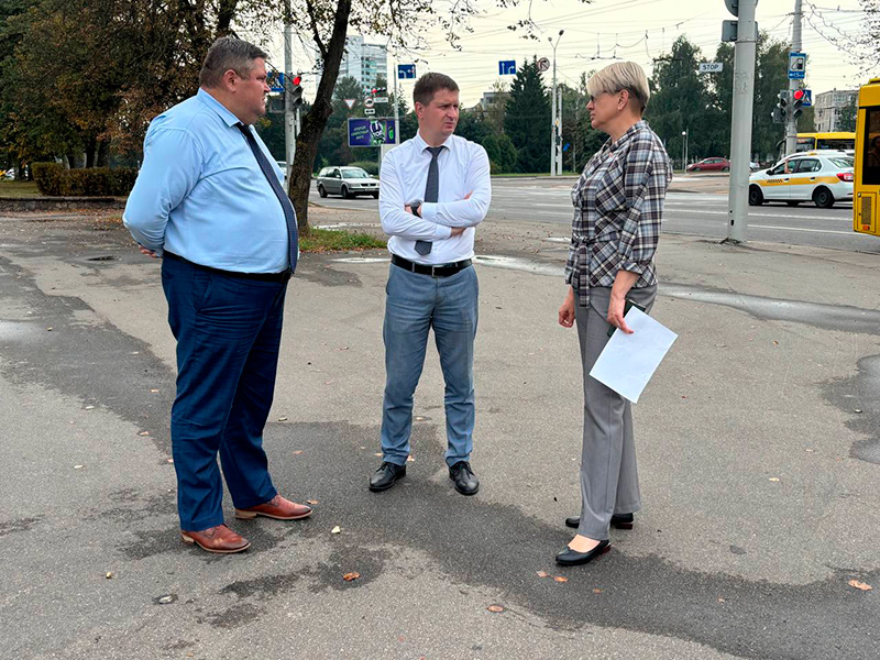 Глава администрации Первомайского района Вадим Передня во время объезда с заместителем Любовью Букаткиной и директором ГП «Ремавтодор Первомайского района» Сергеем Шкадаревичем оценил состояние инфраструктуры в проблемных местах.