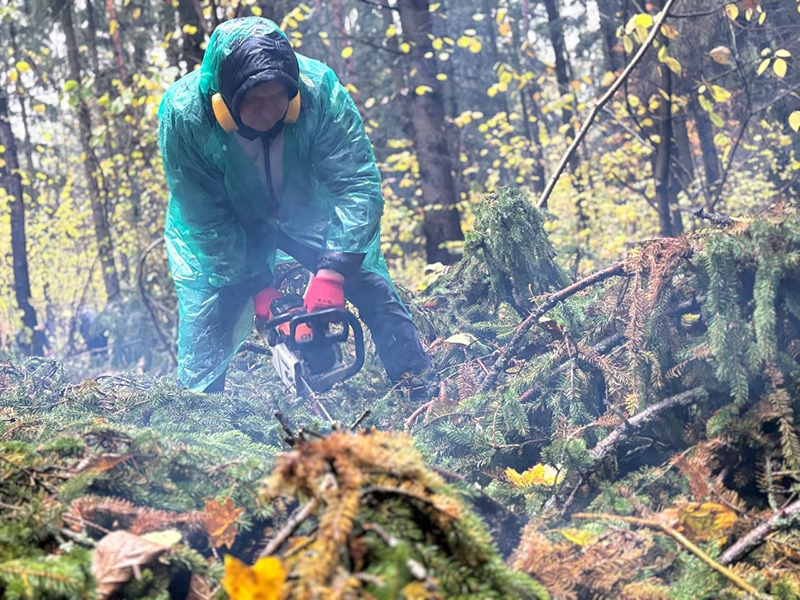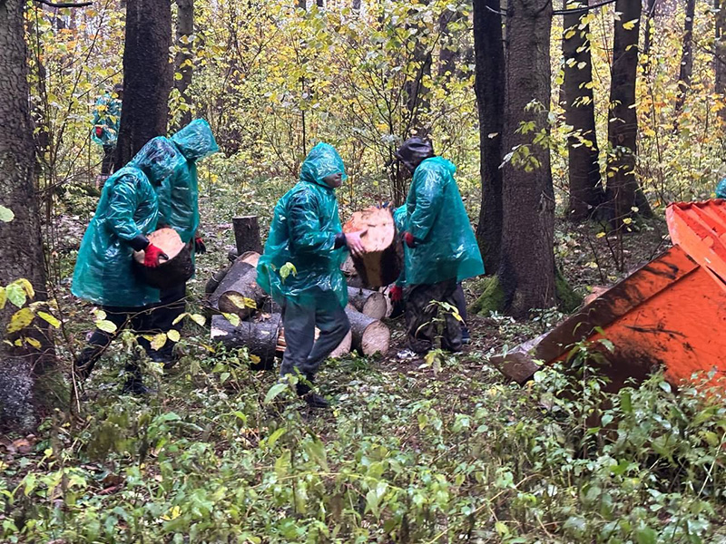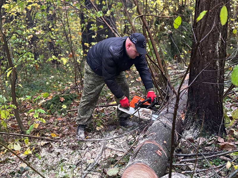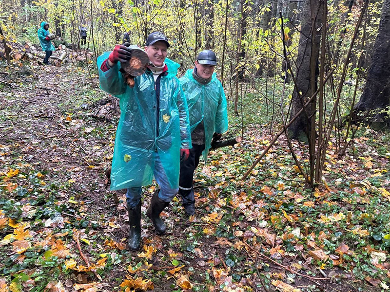На этой локации трудовой десант наводил порядок в части расчистки лесопарковой зоны от поваленных и старых деревьев, мусора и листвы.