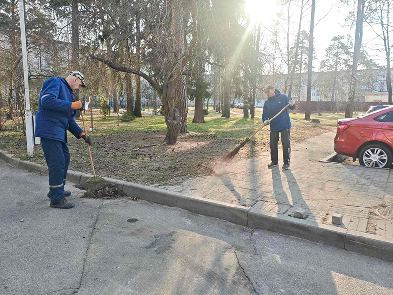 В Первомайском районе столицы 28 марта прошли массовые субботники. Наблюдалась тотальная мобилизация граблей, метел и хорошего настроения.