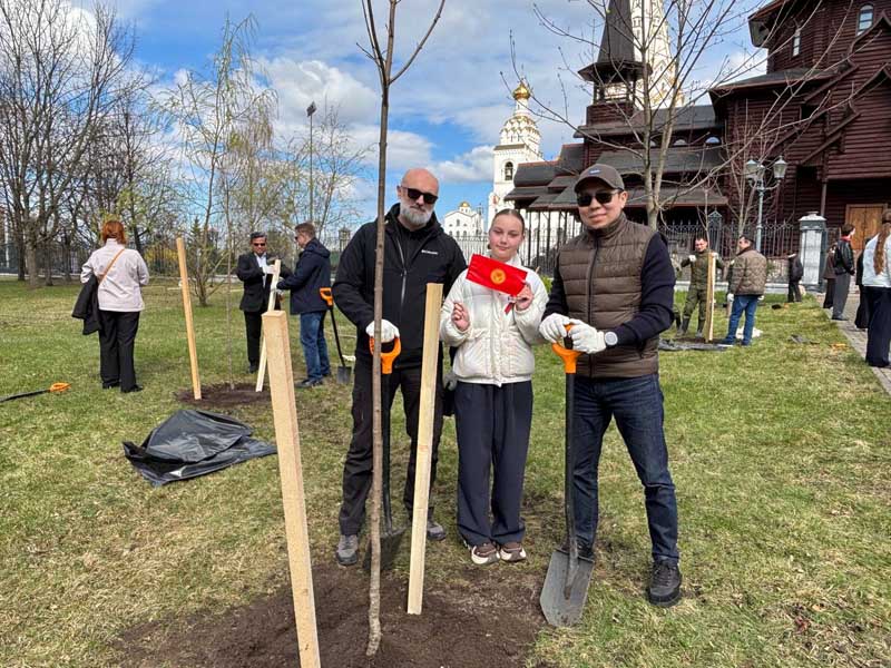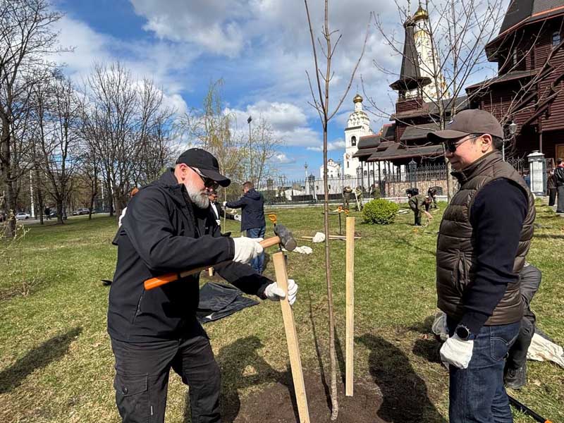 Торжественная церемония закладки памятной аллеи как часть акции «Зеленый пояс ШОС», приуроченной к 25-летию Шанхайской организации сотрудничества (ШОС), прошла в Яблоневом сквере у Храма-памятника в честь Всех Святых 18 апреля.