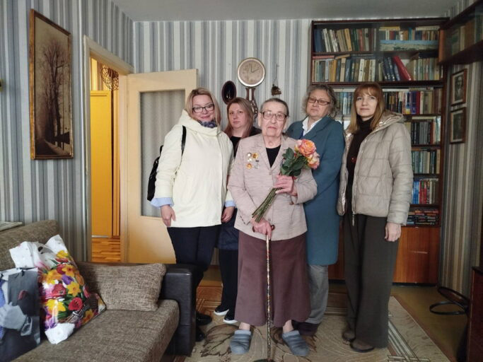 В годы Великой Отечественной войны Галина Прокофьевна, будучи ребенком, участвовала в партизанском движении, прошла концлагеря. Уже в мирное время она стала героиней документального фильма о малолетних узниках немецких концлагерей. После субботника представители ЖКХ поздравили ее с наступающим Днем Победы.