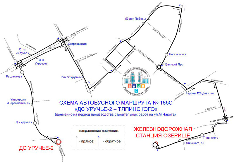 В связи с поступлением в ГП "Столичный транспорт и связь" (далее - предприятие) обращения по вопросу изменения трассы движения автобусного маршрута № 165С "ДС Уручье-2 - Тяпинского" со следованием через ул. Курсанта Гвишиани для создания беспересадочной транспортной связи района ул. Тяпинского, Михася Чарота (микрорайон Озерище) с обслуживающей поликлиникой №42 была разработана новая схема движения автобусного маршрута.