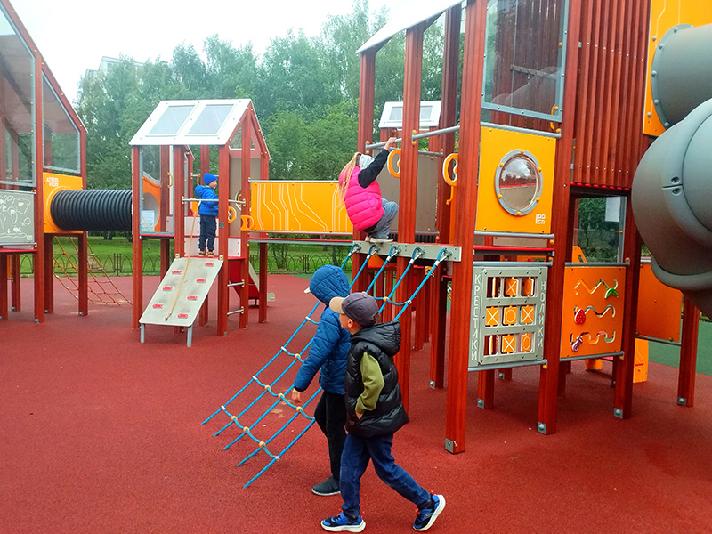 На придомовой территории по пр. Независимости, 127 обустроили современную функциональную детскую площадку с безопасным покрытием и новейшими моделями детского игрового оборудования